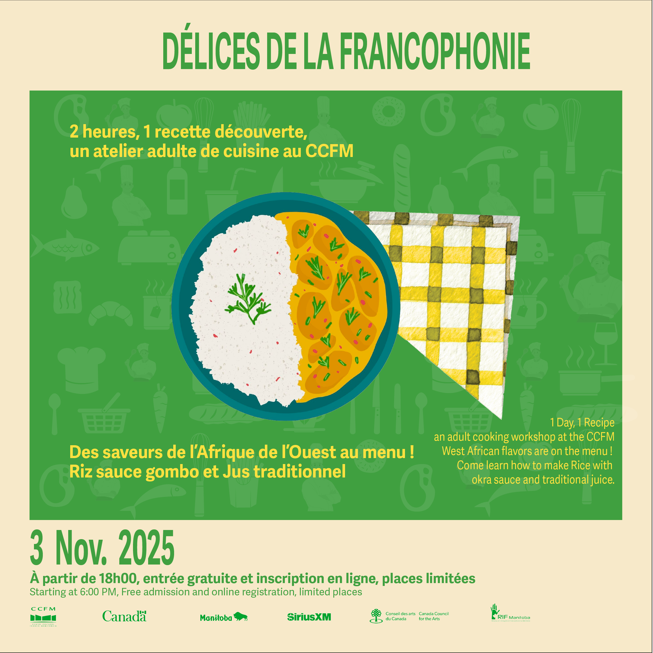 Notre cheffe d’un jour, Nadège Tuo, vous invite pour un véritable voyage culinaire en Afrique de l’Ouest avec un riz sauce gombo parfumé et un jus traditionnel pour une immersion authentique sous le soleil africain.