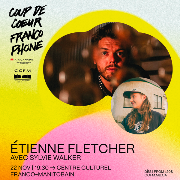 Originaire de Regina en Saskatchewan, Étienne Fletcher se distingue comme l’un des artistes influents de la scène musicale franco-canadienne de sa génération. En 2022, il a été sacré “Artiste francophone de l’année” aux West Coast Music Awards, et en 2023, il a remporté quatre prix au Gala Trille Or, dont ceux de l’artiste de l’année et de l’album de l’année.