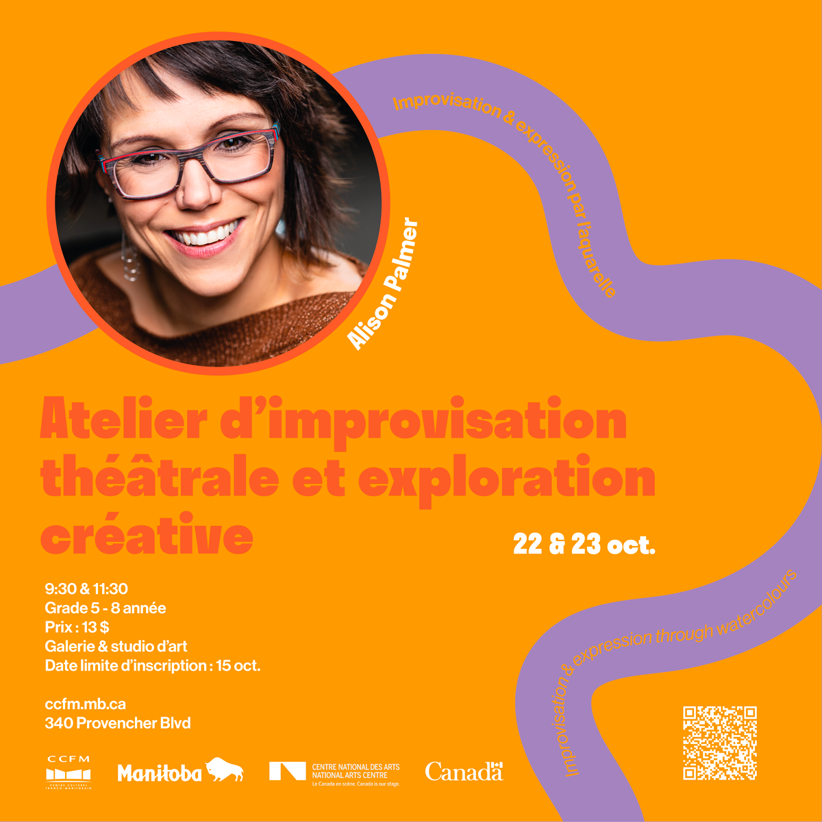 En parralèle de l'exposition Siècle Molière Century qui célèbrera le centenaire du Théâtre Cercle Molière, le Centre culture franco-manitobain propose, pour les élèves de la 5e à la 8e année, un atelier d'improvisation théâtrale et d'exploration créative animé par Alison Palmer.