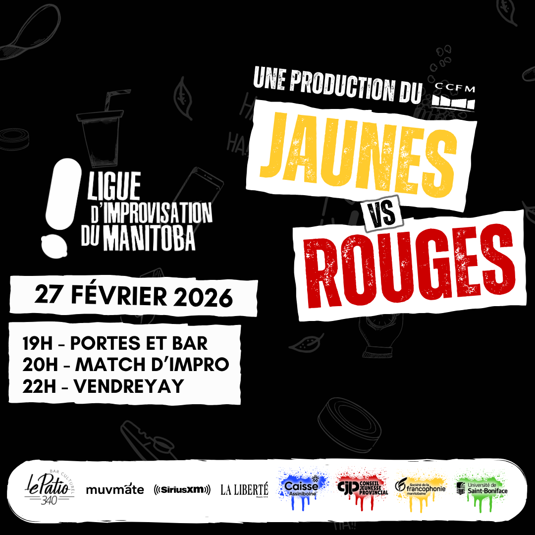 Le 27 février, dès 20h, les Jaunes et les Rouges s'affronteront dans l'espoir de conquérir tous vos gloussements et rires ! À coups de répliques comiques, de personnages inattendus et de talents surprenants, les joueurs et les joueuses déploient toute leur énergie pour offrir un match survolté*. Pour prolonger le plaisir, les VENDREYAY prennent le relais dès 22h15 :
